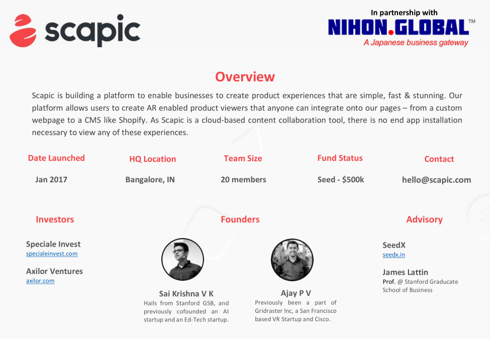 Scapic is building a platform to enable businesses to create product experiences that are simple, fast & stunning. Our platform allows users to create AR enabled product viewers that anyone can integrate onto our pages - from a custom webpage to a CMS like Shopify. As Scapic is a cloud-based content collaboration tool, there is no end app installation necessary to view any of these experiences.